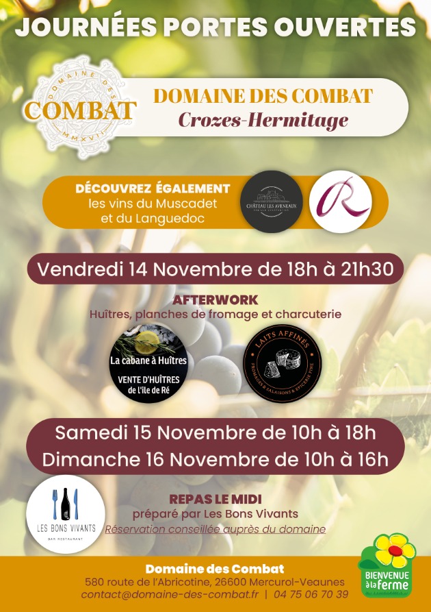 Réservation des repas par téléphone au 04.75.06.70.39 ou par mail à contact@domaine-des-combat.fr