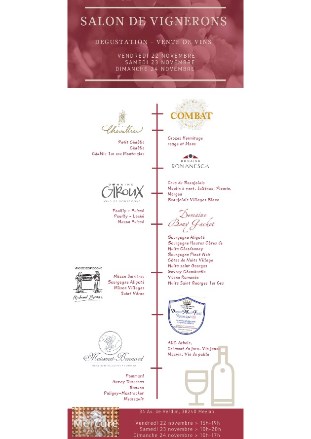 Le Domaine sera présent du 22 au 24 novembre au salon de vigneron à Meylan pour cette édition 2024, afin que vous puissiez déguster nos cuvées de Crozes-Hermitage !